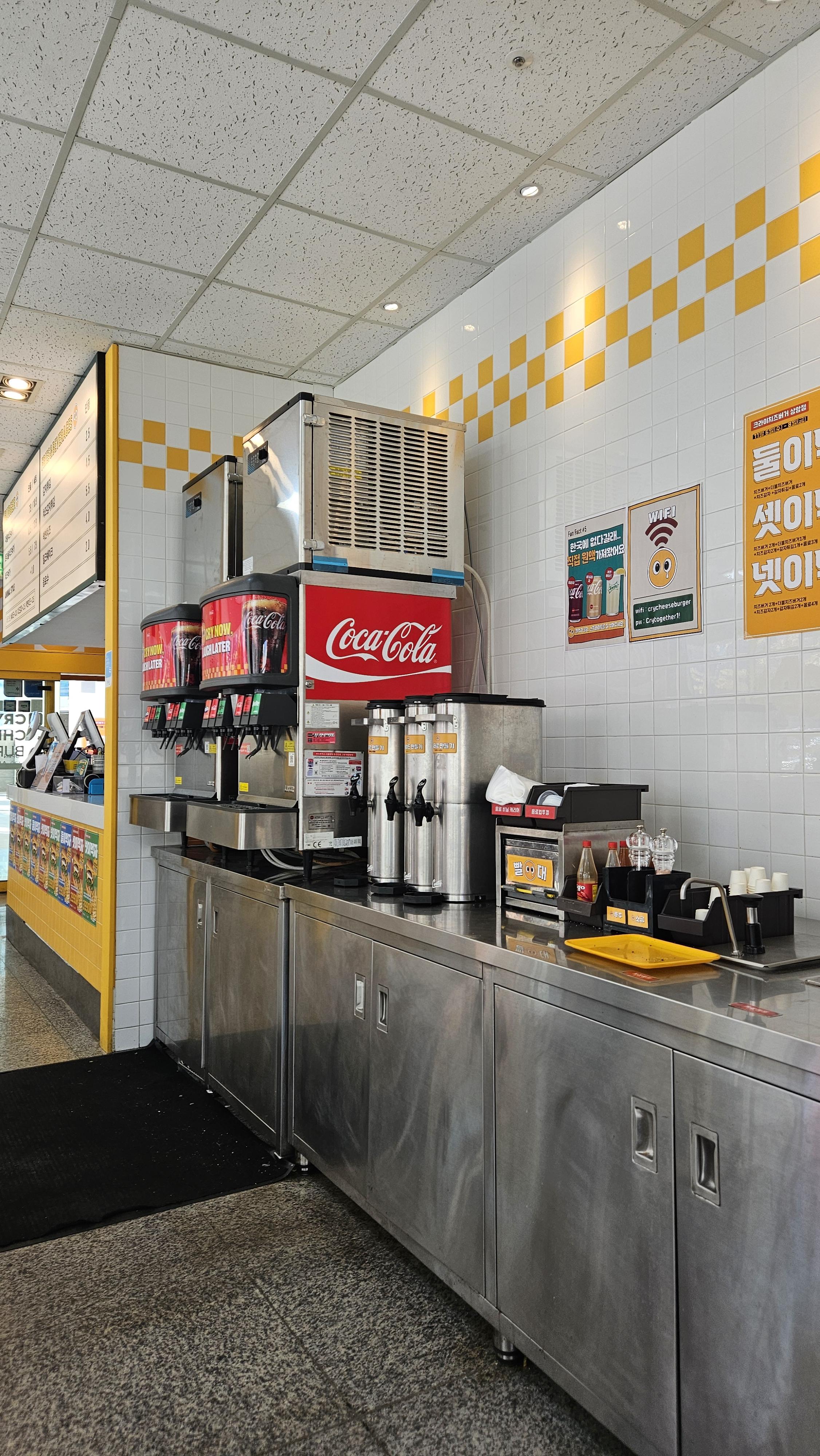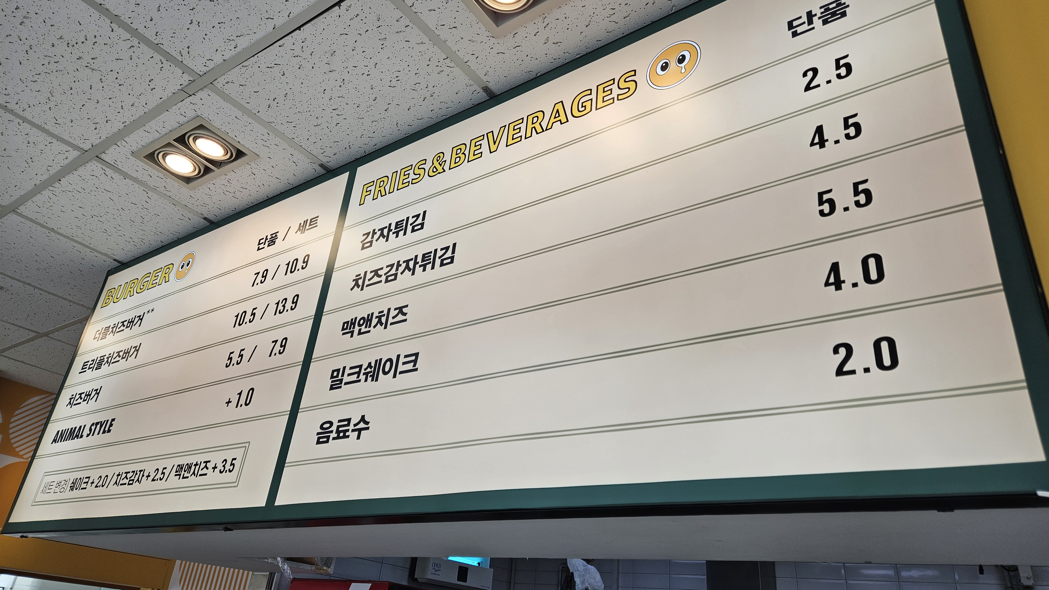 번호표 뽑고 기다리면 기본 치즈버거 치즈 감튀와 일반 감튀 그리고 음료까지.