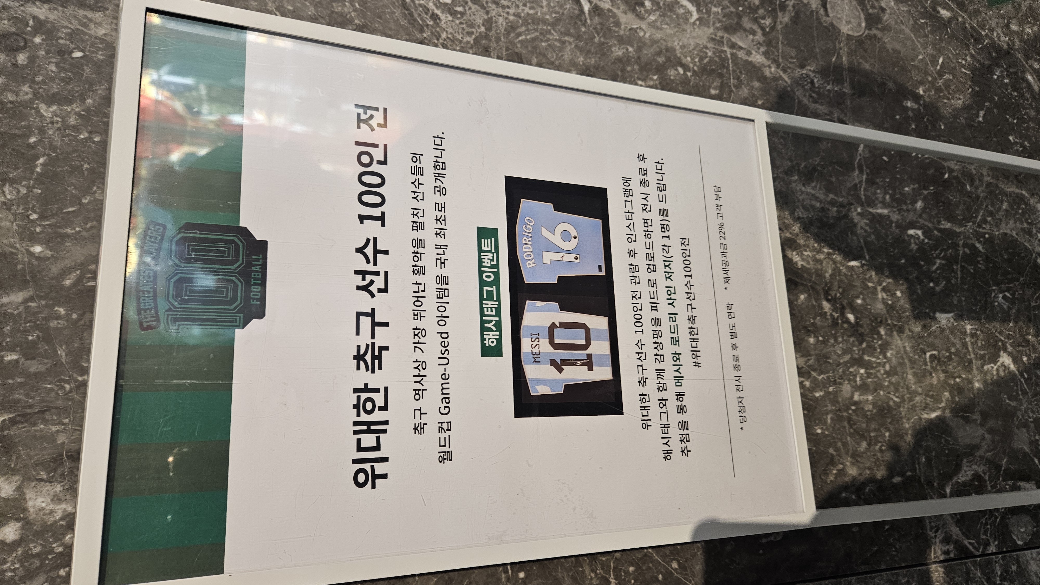 제목은 위대한 축구인 100인전인데..100명을 다 본건지 까리하기도하고..그냥 유니폼 전시랑 축구화 전시 외에는 크게 볼거리가 없음.