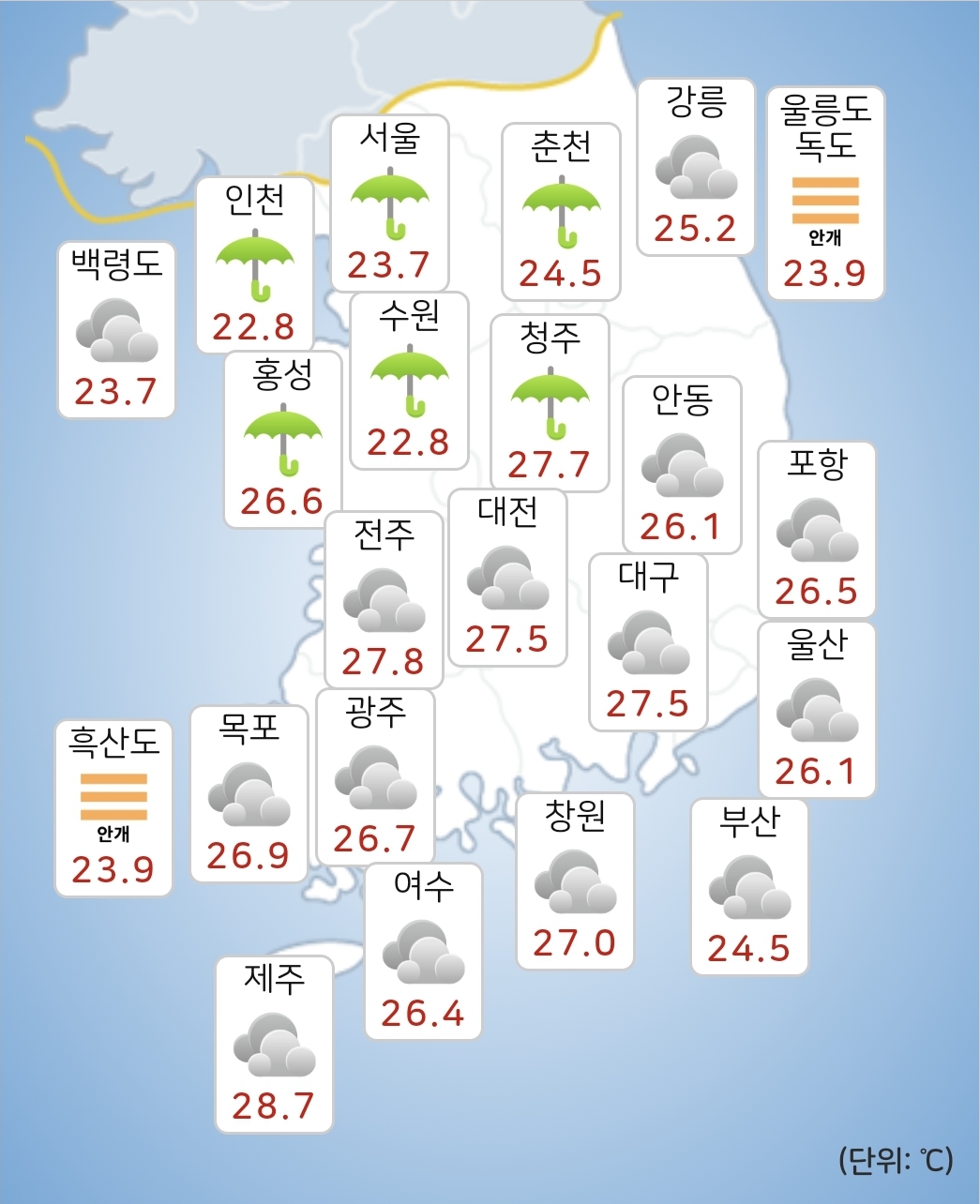 - 오늘(18일) 낮최고기온은 26~30도가 되겠습니다.
