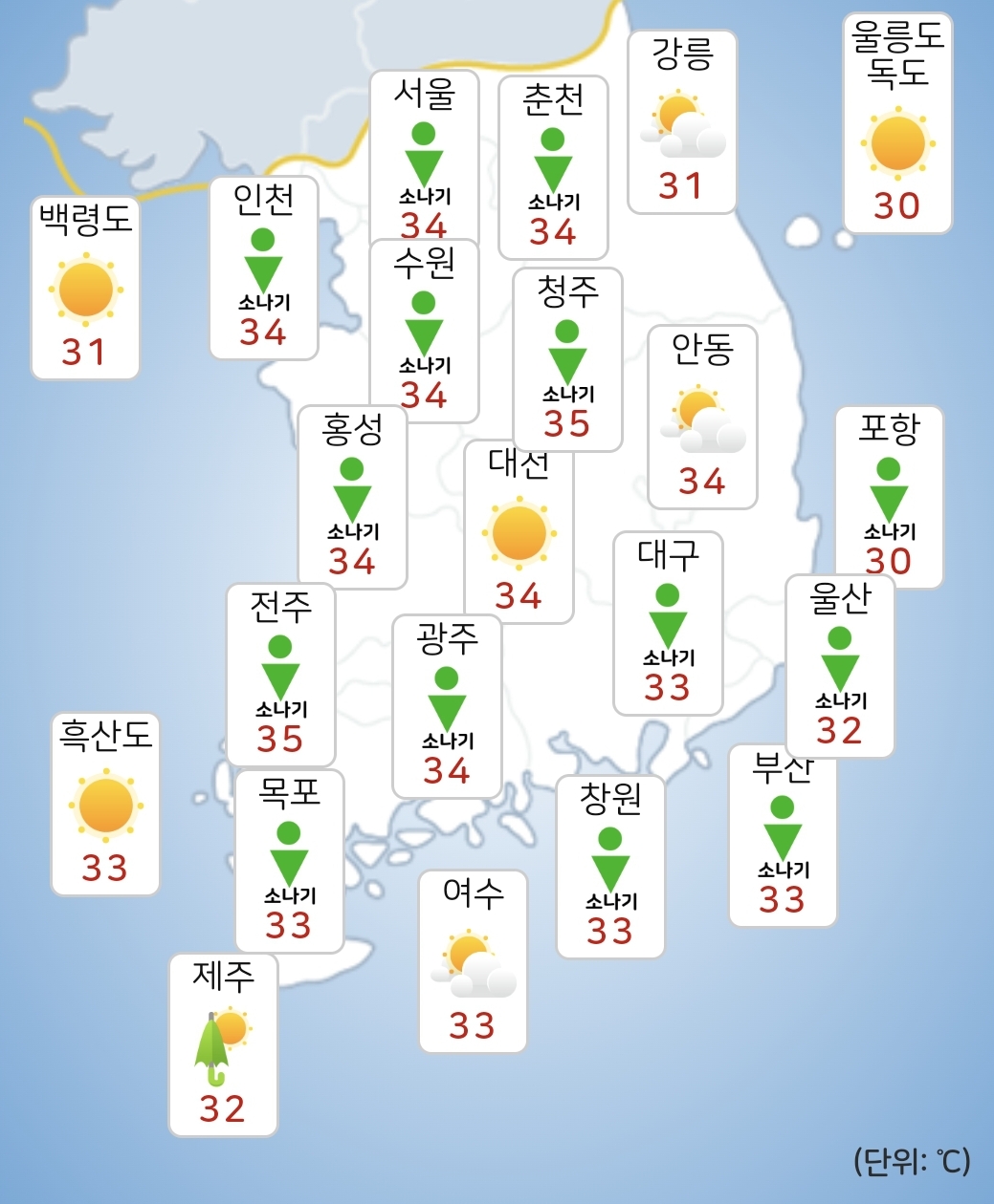 (3일 전망) 전국 무더위와 열대야, 소나기 곳, 제주도 비"