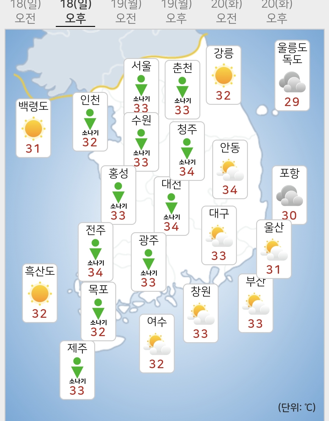 - 오늘(18일) 낮최고기온은 30~35도가 되겠습니다.