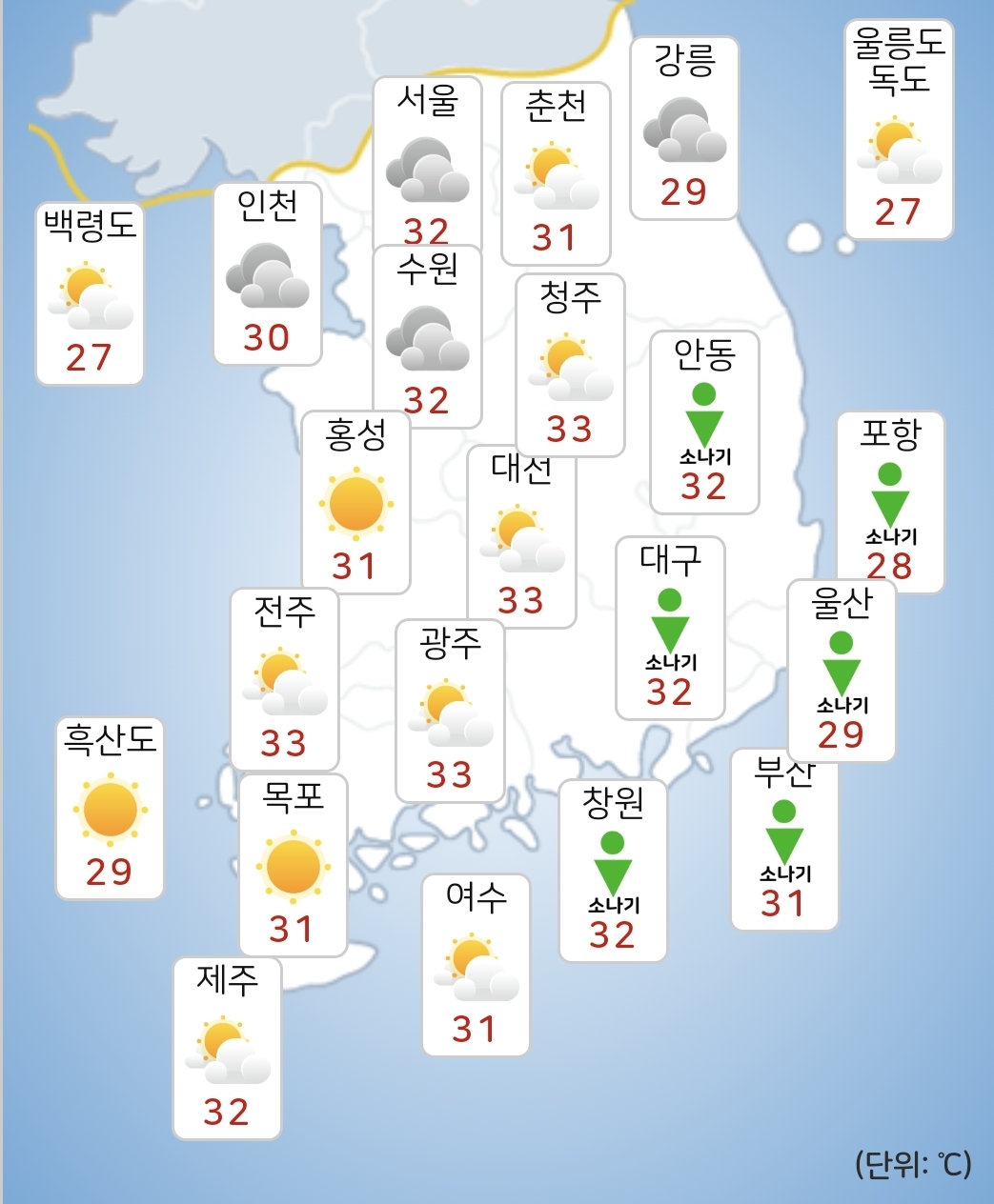 (3일 전망) 전국 대부분 덥겠음, 오늘~내일 남부지방 중심 소나기 곳"