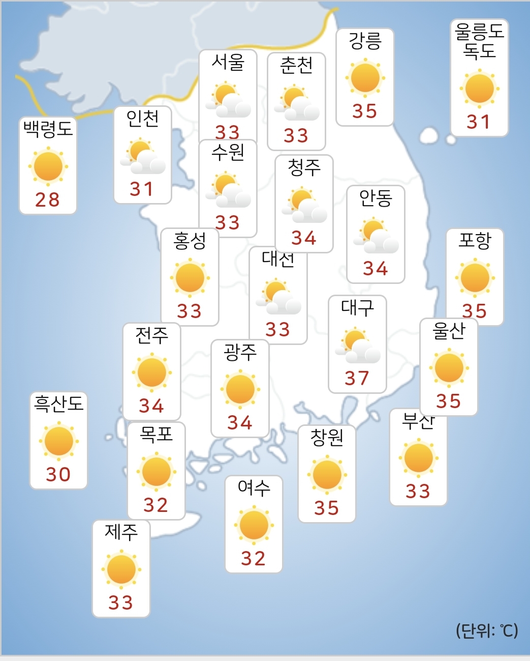 - 오늘(31일) 낮최고기온은 31~37도가 되겠습니다.
