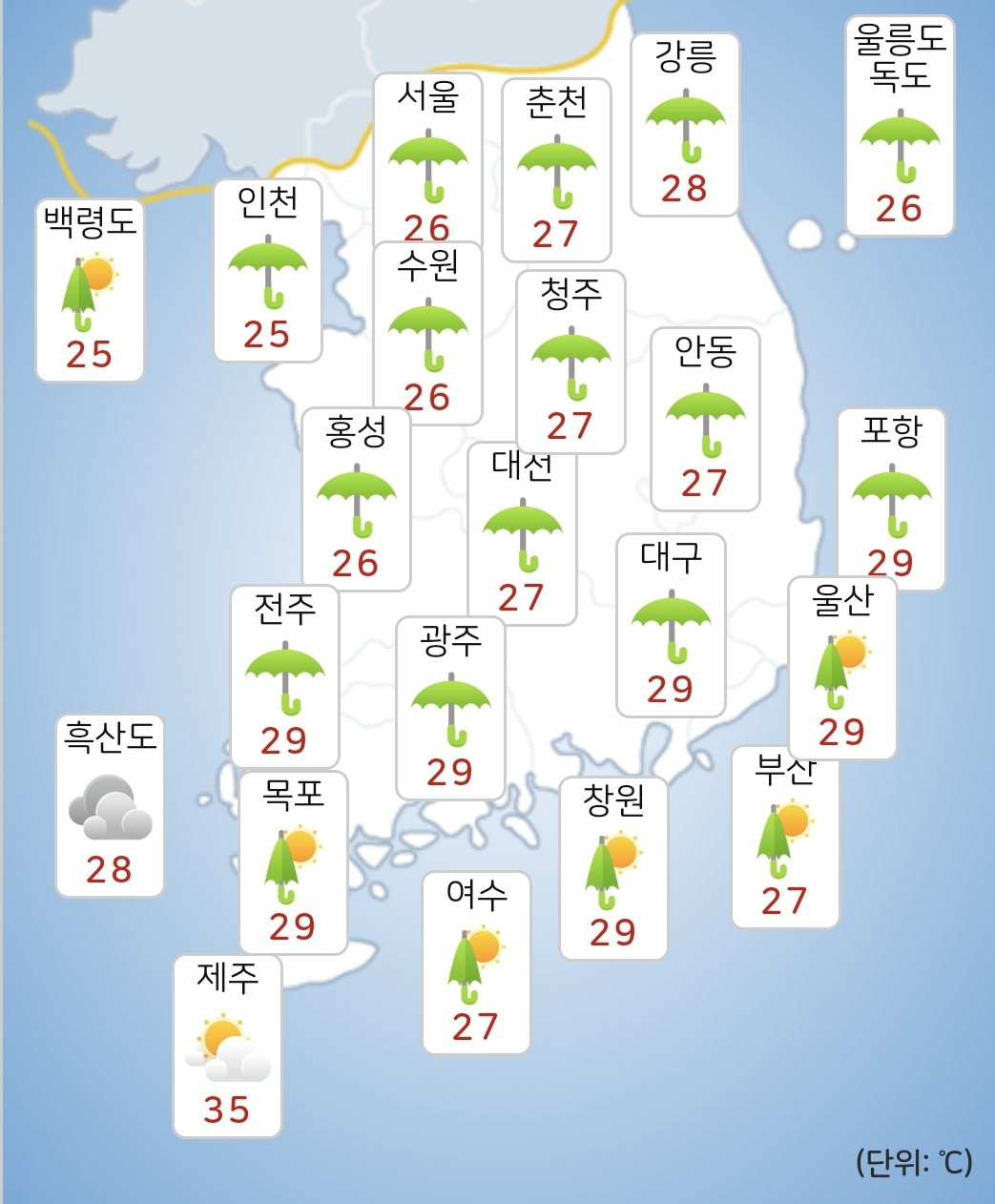 - 오늘(9일) 낮최고기온은 25~30도가 되겠습니다.