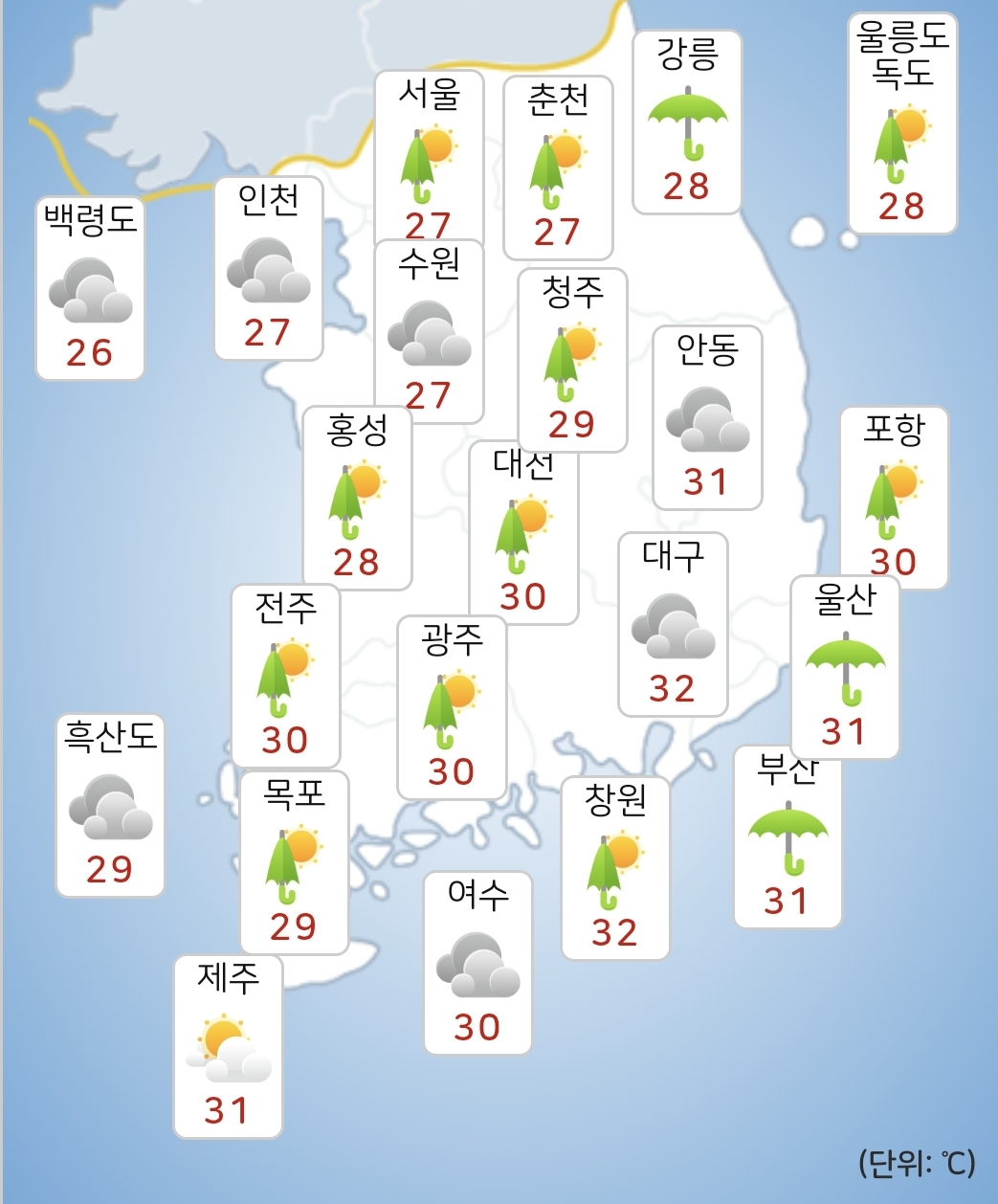 "(3일 전망) 오늘 전국 대부분 지역 가끔 비 곳, 남부지방 중심 덥겠음"