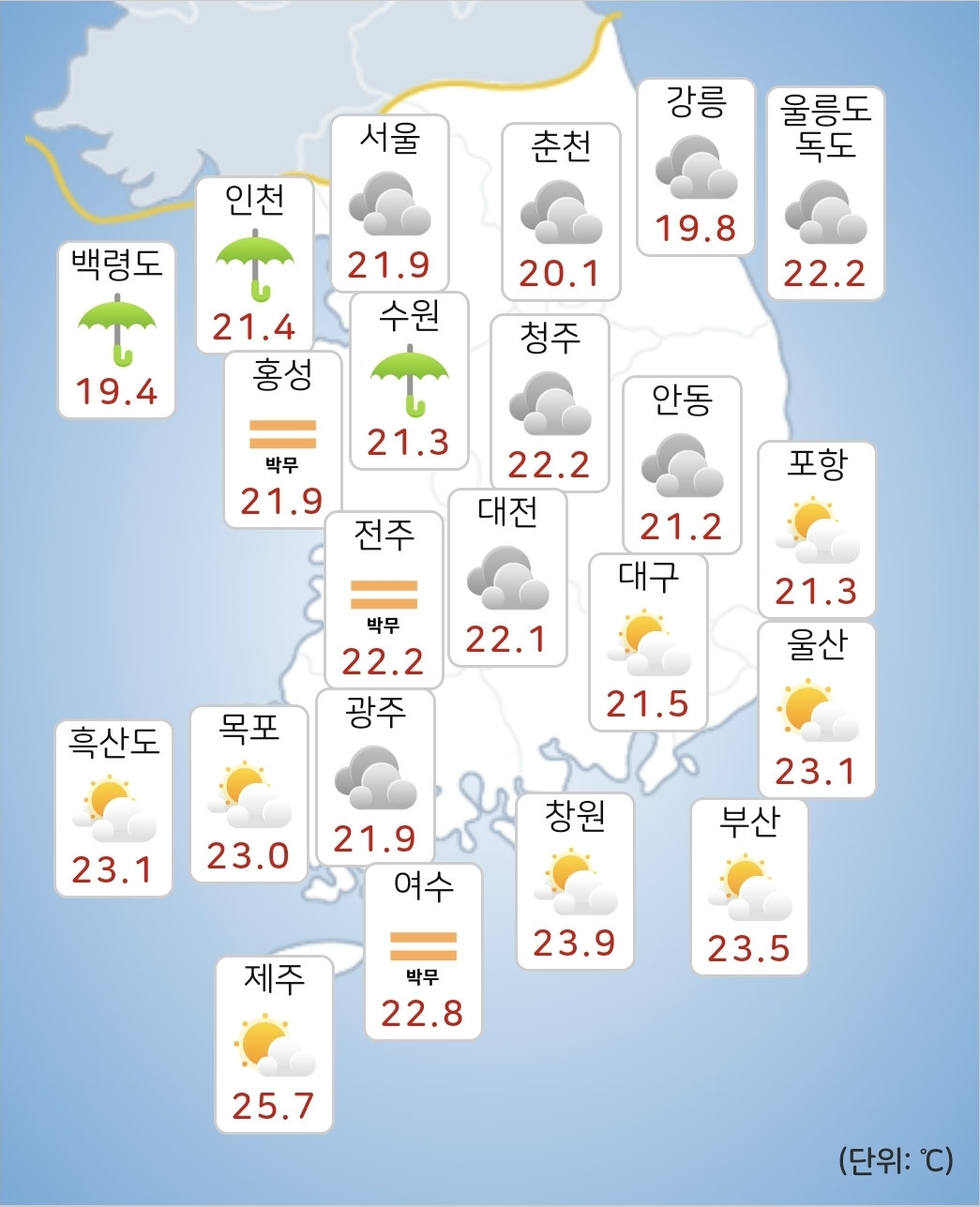 - 오늘(5일) 낮최고기온은 23~28℃가 되겠습니다.