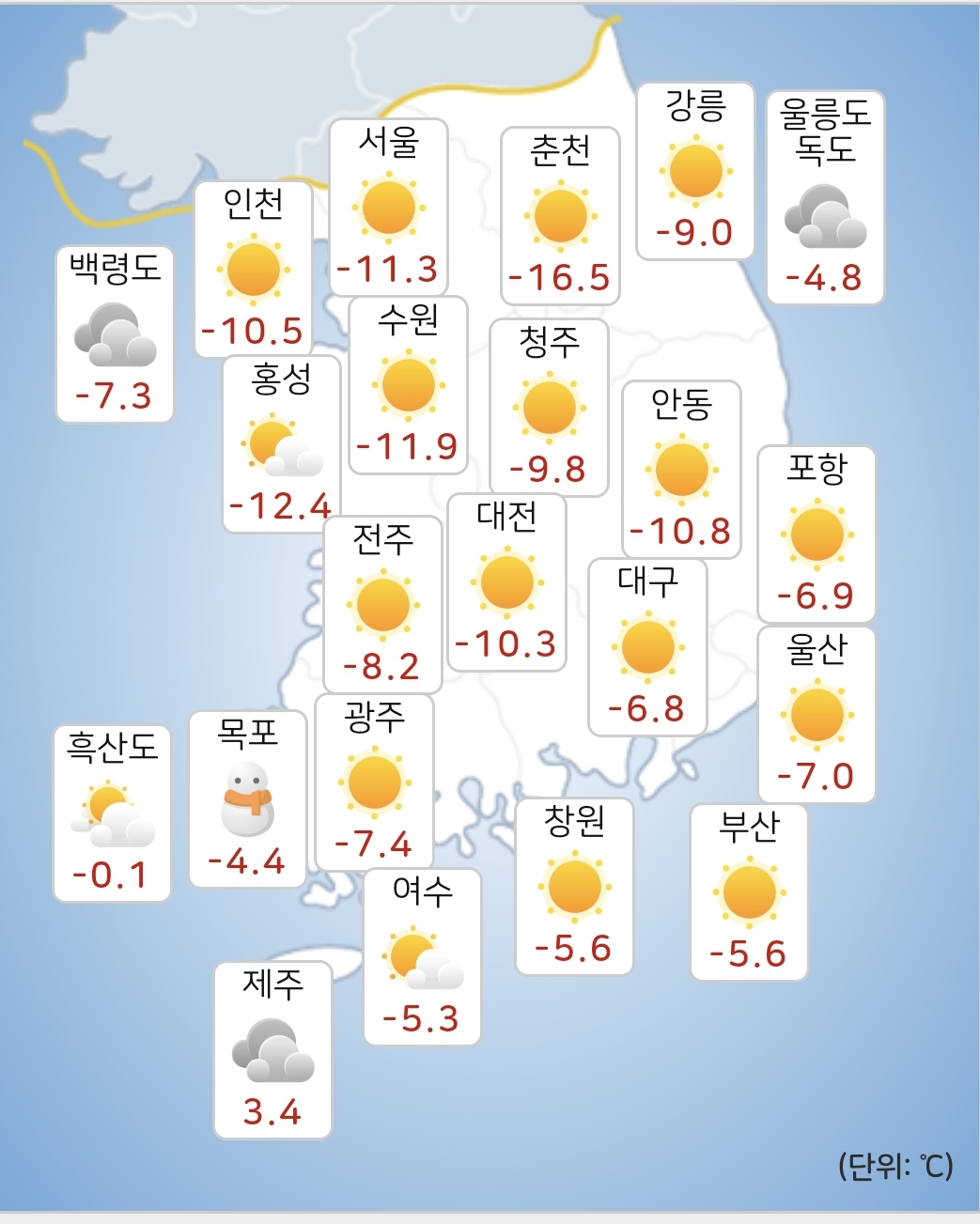 - 오늘(5일) 낮최고기온은 -7~4도가 되겠습니다.