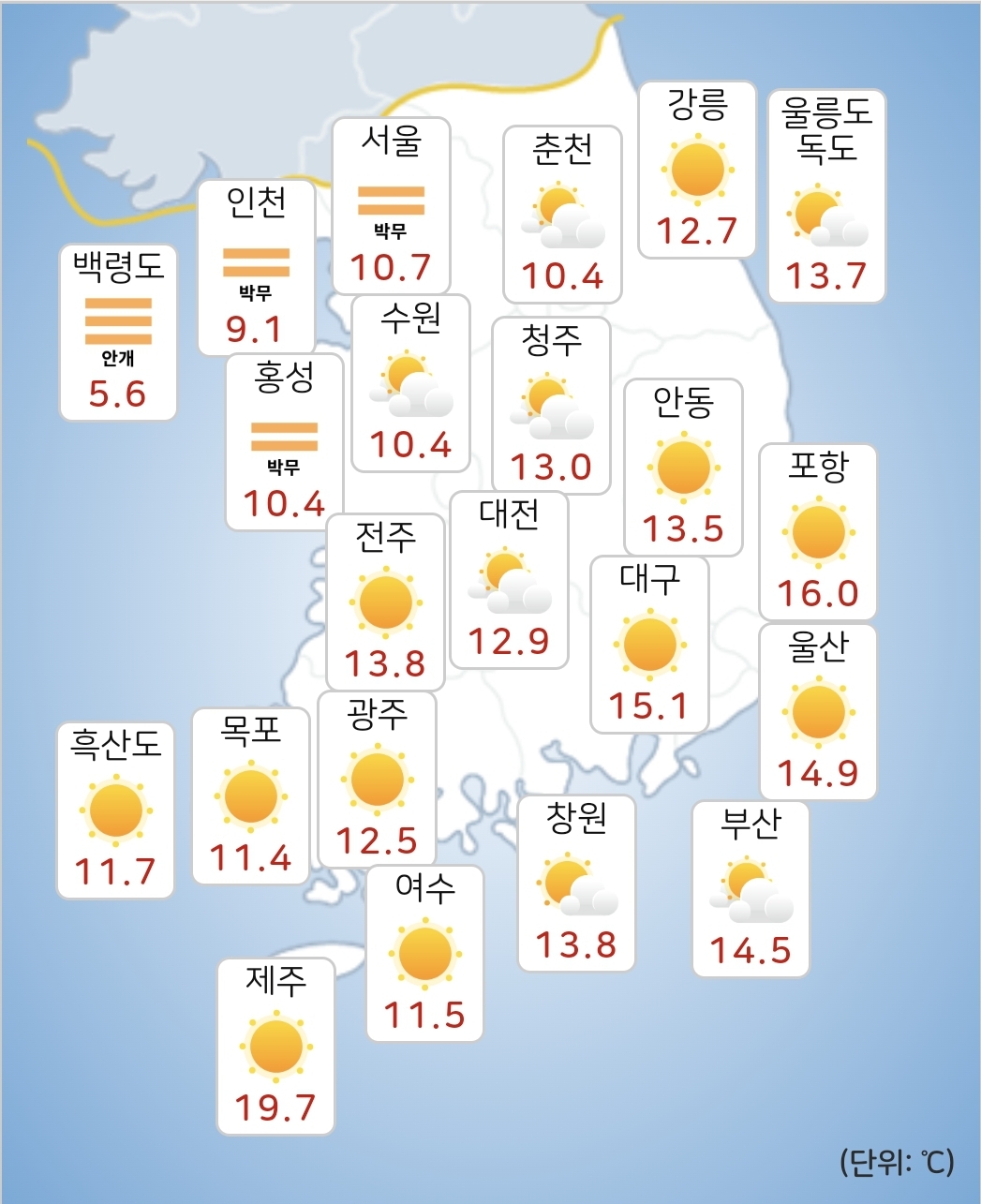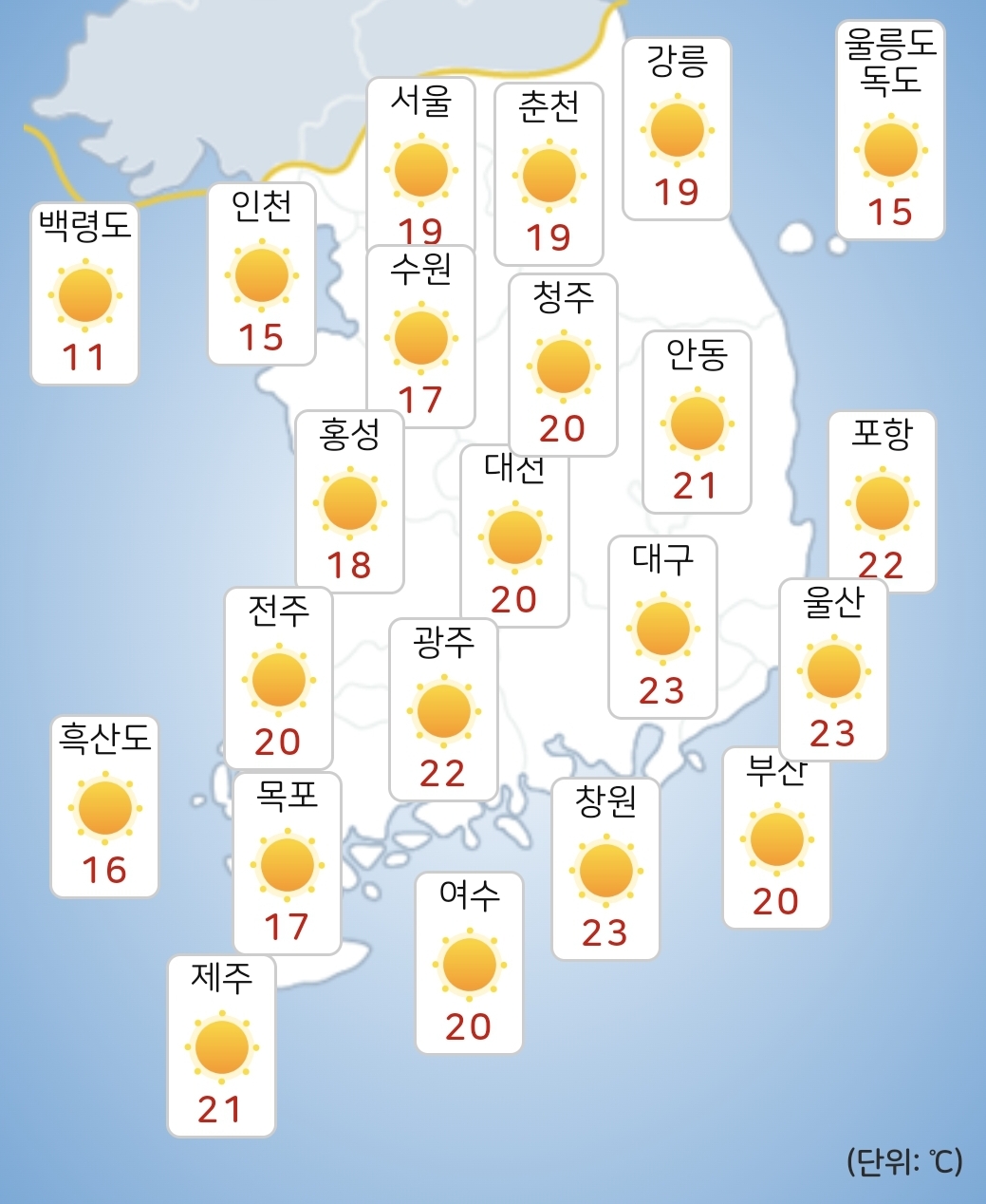 ○ (기온) 글피(11일) 아침최저기온은 5~11도, 낮최고기온은 15~23도가 되겠습니다.