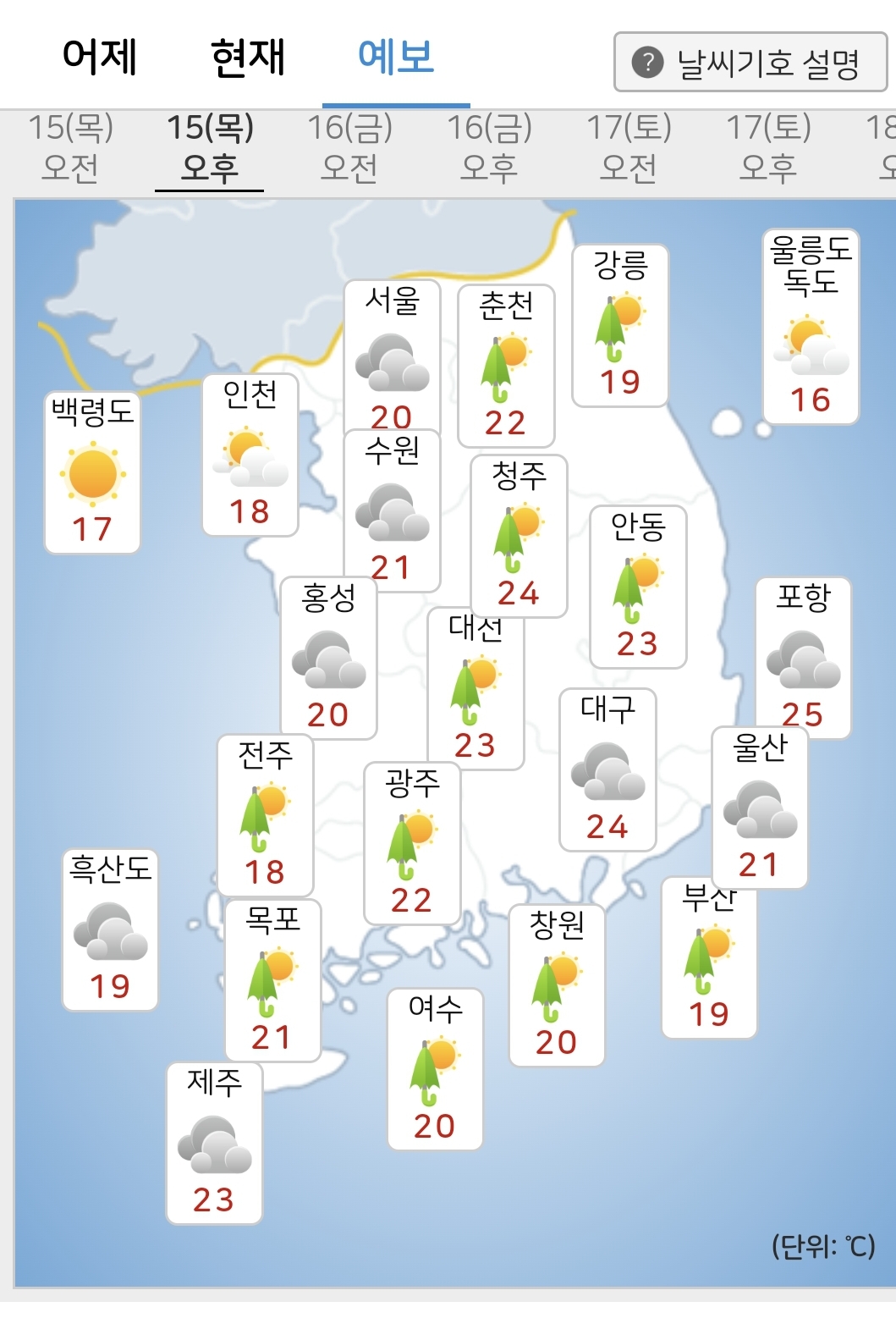 - 오늘(15일) 낮최고기온은 18~25도가 되겠습니다.