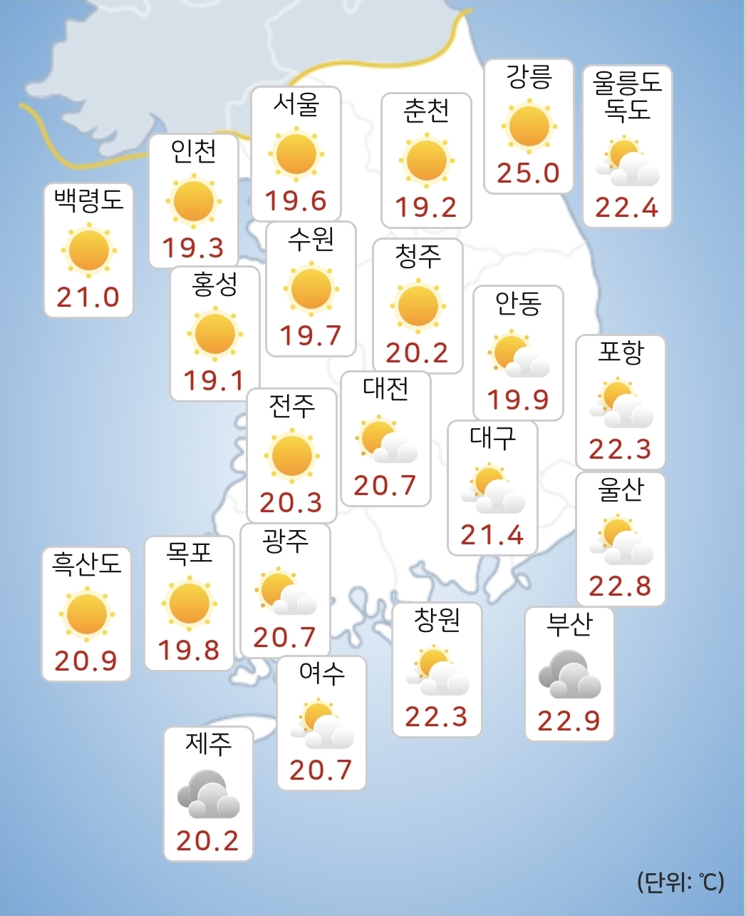 단기 전망) 모레까지 낮 기온 올라 덥겠음, 내일부터 제주도 비"