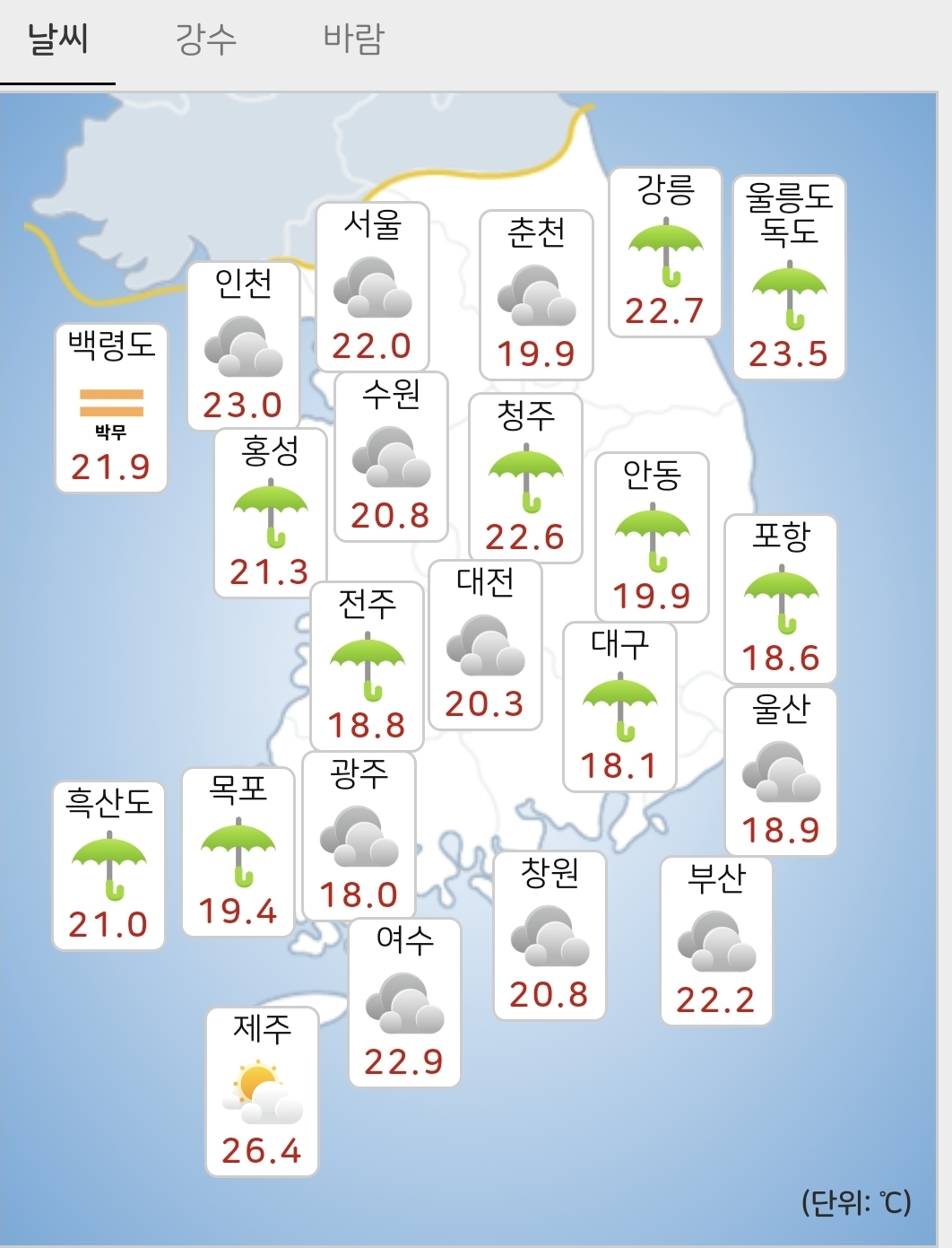 - 오늘(9일) 낮최고기온은 23~30℃가 되겠습니다.