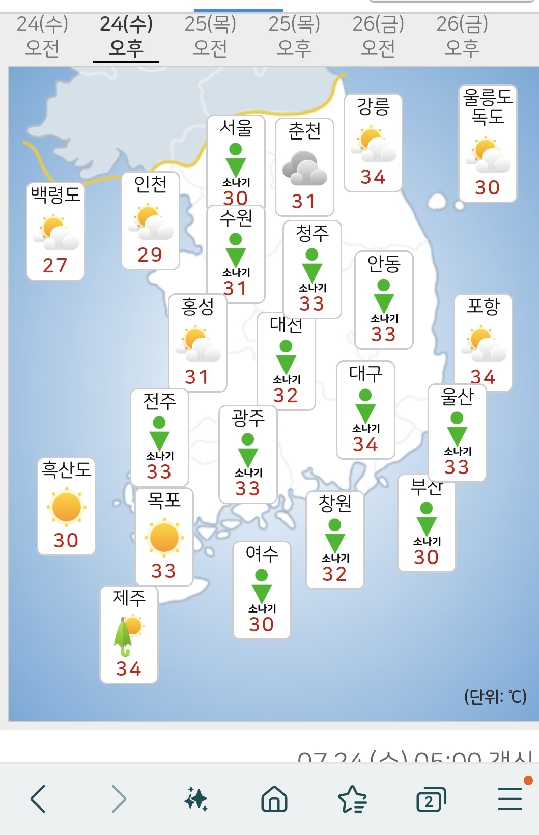 ※ 07월 24일부터 07월 26일까지의 전망입니다.