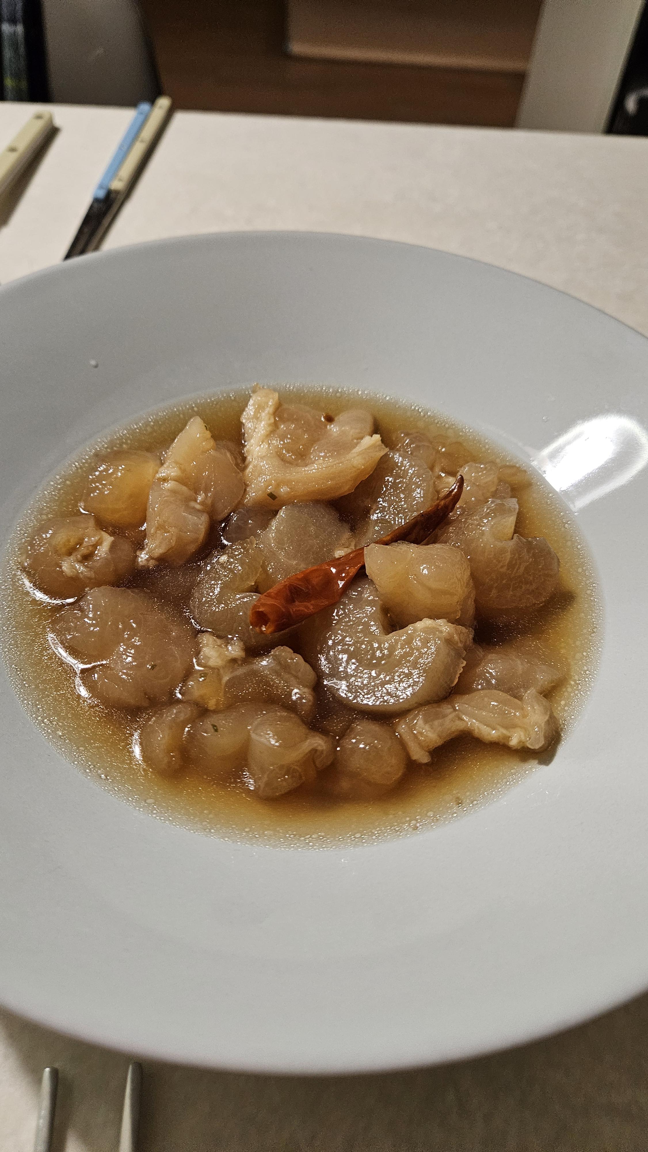 국물은 약간 매콤한 어묵탕의 느낌이있고 스지는 부드러워서 밤 늦은 시간 한잔 할 안주로 딱.